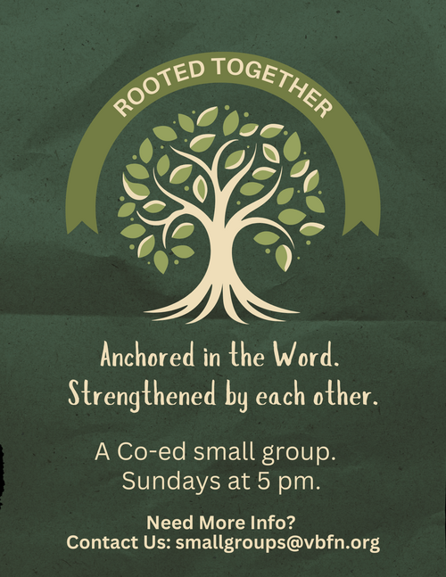 A co-ed small group growing deeper in God’s Word and in community with one another. We gather to study Scripture, share life, and encourage one another in faith.